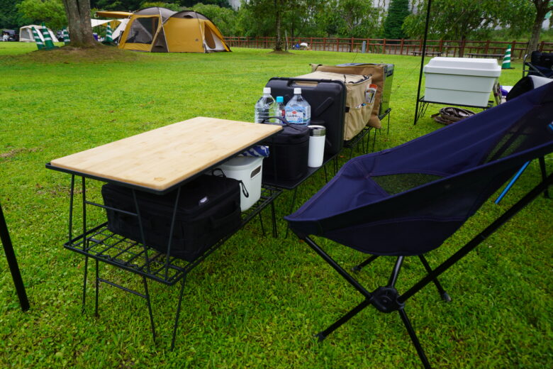 キャンプに行くと、なぜか荷物があちこちに散らかってしまう…。そんな悩みをスッキリ解決してくれるのが、ヒバリの「フィールドラック」です。調理器具や食材を置くだけでなく、子どもが自分の持ち物を並べるスペースにもなるので、自然とお片づけ習慣が身につくのも嬉しいポイント。